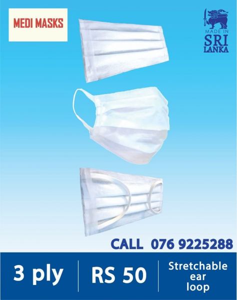 RS. 50 per mask ( Maximum price allocated by the government)Best locally manufactured mask with stretchable ear-loop.Delivery within Colombo and Gampaha districts.Minimum order quantity is 100 pieces.Contact 076 922 52 88