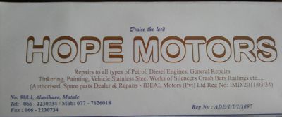 Repairs to all types of petrol,Diesel Engines,General Repairs Tinkering,Printing,Vehicle Stainless Steel Works of Silencers Orash Bars Railings ect... Authorized Spare parts Dealer and Repairs IDEAL Motors Pvt Ltd Reg No IMD/2011/3/34